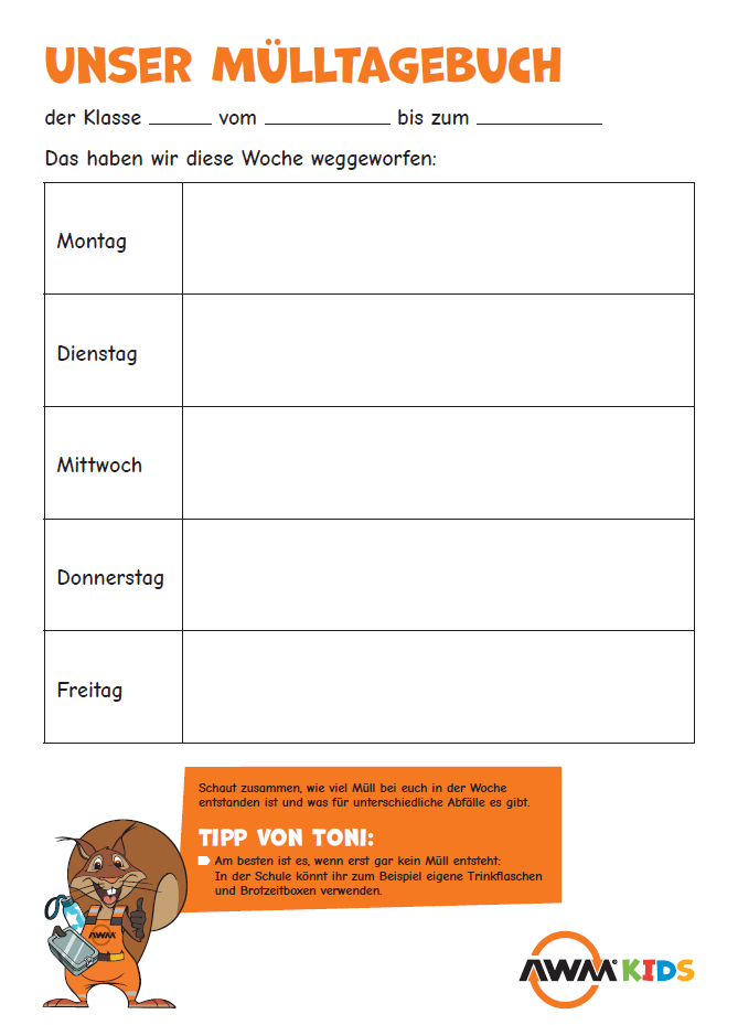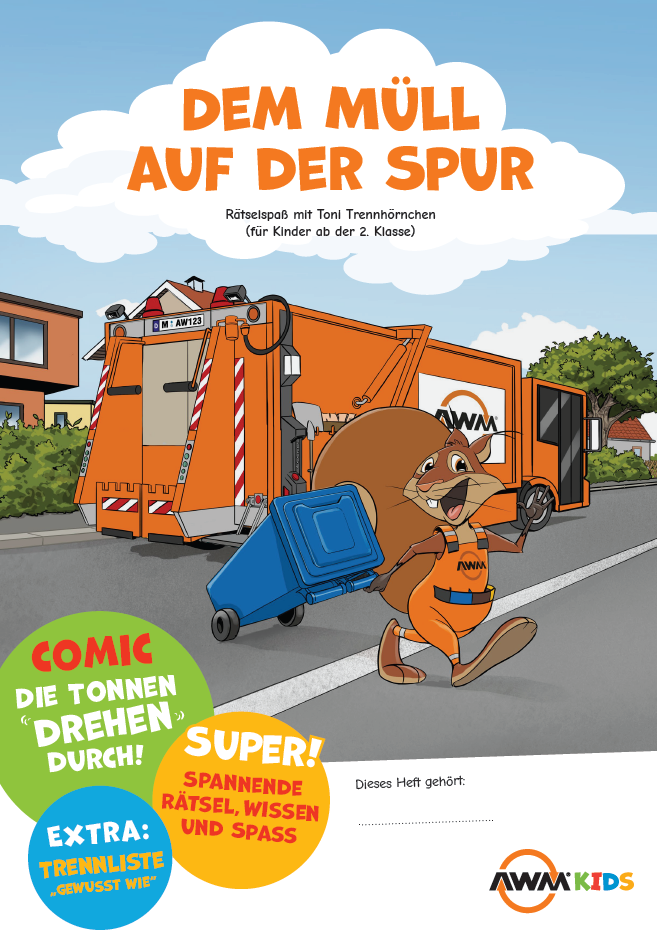 Der AWM möchte Sie mit Unterrichtsmaterial beim Vermitteln des Themas „Müll“ im Fach HSU (an Grundschulen) sowie beim Einführen von konsequenter Mülltrennung an der Schule unterstützen. Das Unterrichtsmaterial mit Toni Trennhörnchen vermittelt kindgerecht , wie Abfälle vermieden werden können und welcher Abfall in welche Tonne gehört. Selbstverständlich ist das Unterrichtsmaterial auf die realen Entsorgungs- und Abfalltrennsysteme in München abgestimmt.