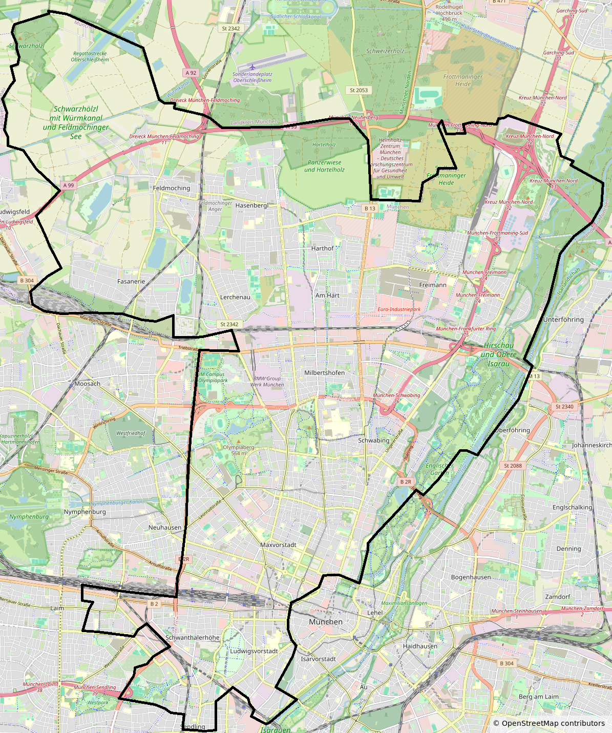Feldmoching-Hasenbergl, Milbertshofen-Am Hart, Schwabing-Freimann, Schwabing-West, Maxvorstadt, Ludwigvorstadt-Isarvorstadt, Neuhausen-Nymphenburg, Laim, Schwanthalerhöhe, Sendling.