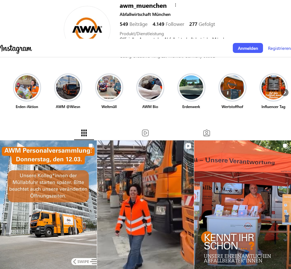 Über unsere Social-Media-Kanäle informieren wir zeitgemäß und bürgernah über Abfalltrennung, Abfallvermeidung und Kreislaufwirtschaft in München. Mit verständlichen Tipps, Einblicken in den Arbeitsalltag von Müllerwerkern oder gemeinsam mit Influencern bringen wir Abfallwissen direkt zu den Münchner*innen.